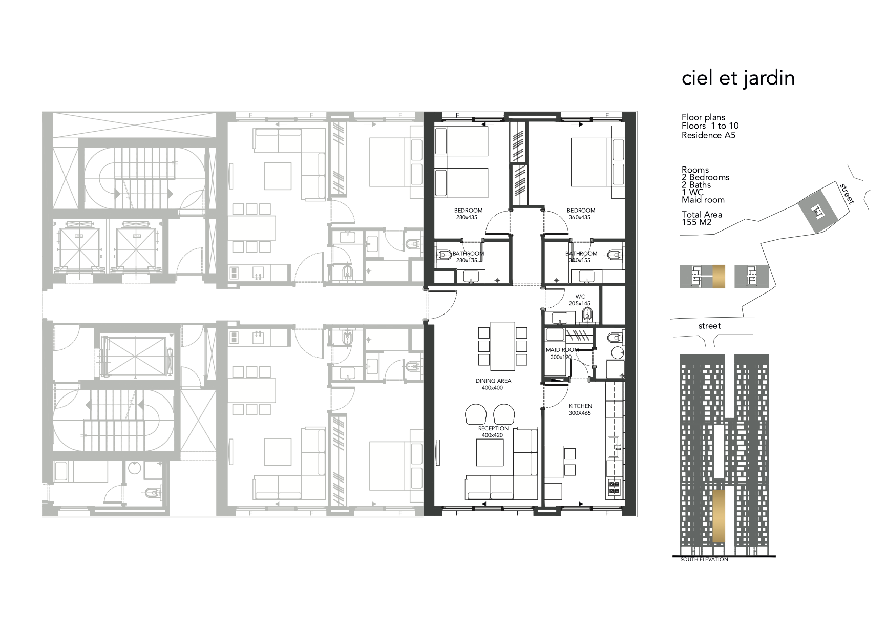 2 Bedrooms – 2 Baths – 1 WC – 1 Maid Room