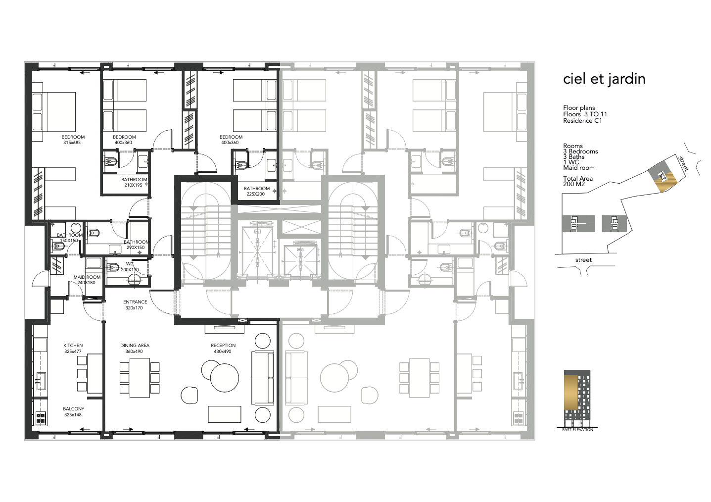 3 Bedrooms – 3 Baths – 1 WC – 1 Maid Room
